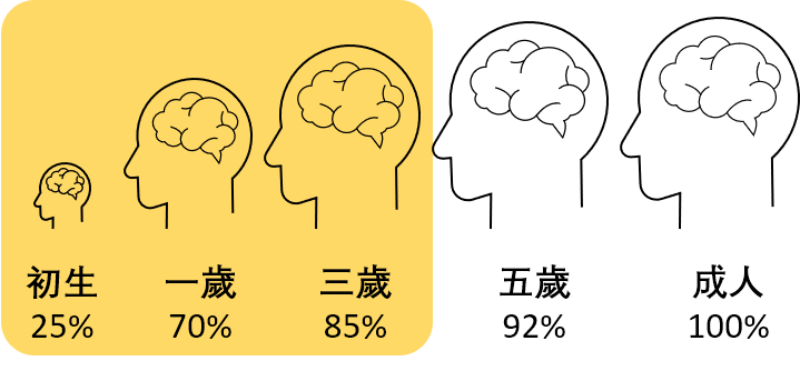俗語「3歲定80」,原來有科學依據?0-3歲期間,孩子的大腦快速發育至成人腦部的約85%,期間家長每一次給予幼兒的經驗及刺激,將會提升幼兒腦部結構(brain architecture) 的質素。